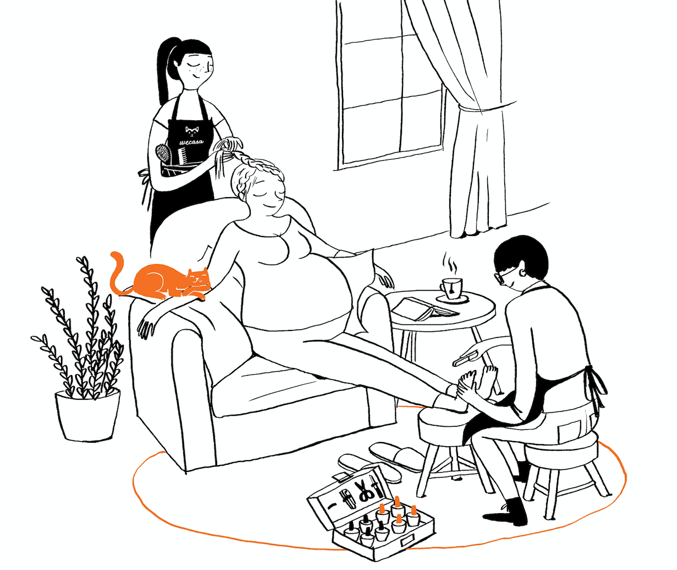 Chaque matin, vous appliquez consciencieusement votre crème anti-vergetures. Vous faites attention à votre régime alimentaire, ne buvez plus d’alcool. Vous vous formez aux méthodes naturelles pour guérir les petits maux (car enceinte, vous n’avez droit à presque aucun médicament…). Bref, vous prenez bien soin de vous et de votre futur bébé. Seulement voilà : quand il s’agit de se lancer dans une pose de vernis aux pieds avec un bidon de 8 mois, ou une épilation à la cire, l’exercice devient vite acrobatique. Vous avez besoin d’une pro ! Choisissez sur Wecasa.fr votre prestation : beauté, massage coiffure… et laissez la magie opérer.