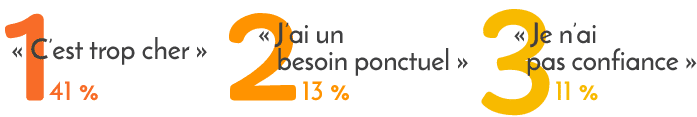 C’est le deuxième frein : 13% des Français renoncent à prendre un homme ou une femme de ménage car ils n’ont que des besoins ponctuels. La prestation de ménage est encore perçu comme un engagement sur la durée, qui ne vaut que si on a des besoins réguliers.C.“Je n’ai pas suffisamment confiance !”