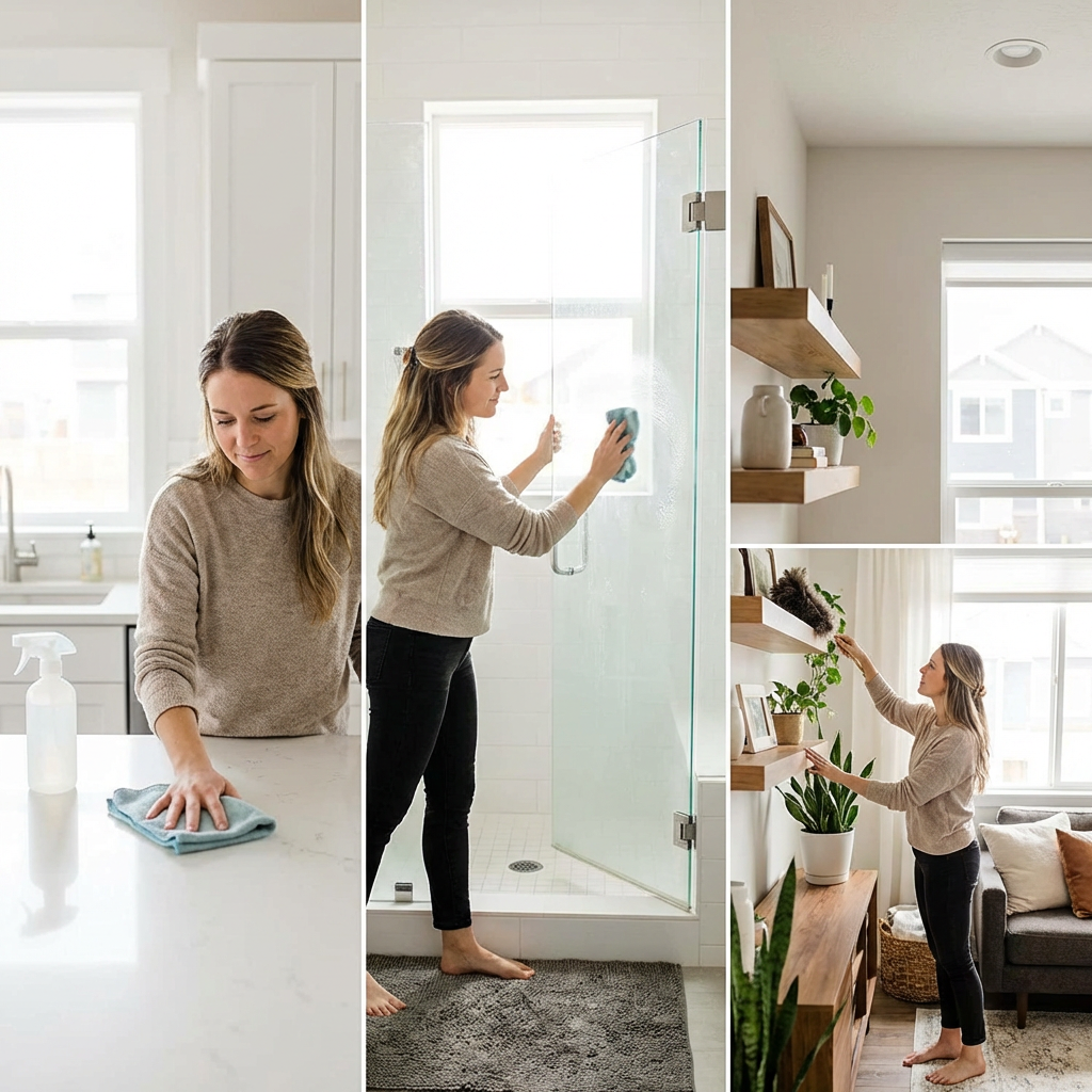 La clé est la routine quotidienne : vaisselle immédiate, linge géré régulièrement, poussière tous les jours sur les surfaces à portée de main et 10 minutes de rangement le soir. Ces micro-habitudes évitent l’accumulation et rendent le ménage profond moins fréquent et moins pénible.