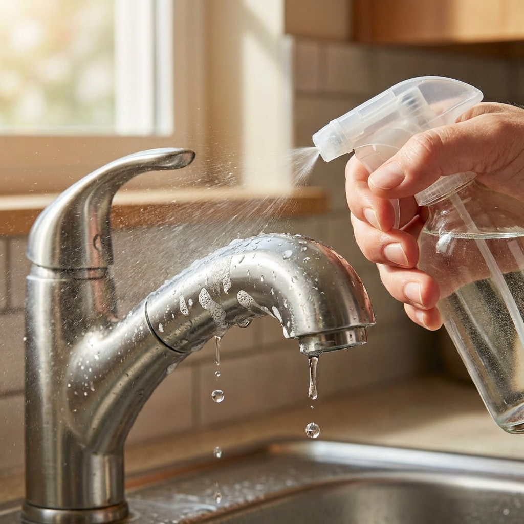 Sur la robinetterie, la pâte bicarbonate (recette n°3) est votre meilleure alliée. Enroulez les zones entartrées avec un chiffon imbibé de la pâte, laissez poser 30 minutes puis frottez délicatement. Pour les endroits difficiles d’accès (base des robinets, aérateurs), utilisez une vieille brosse à dents. Pensez à porter des gants et à aérer la pièce pendant l’application.