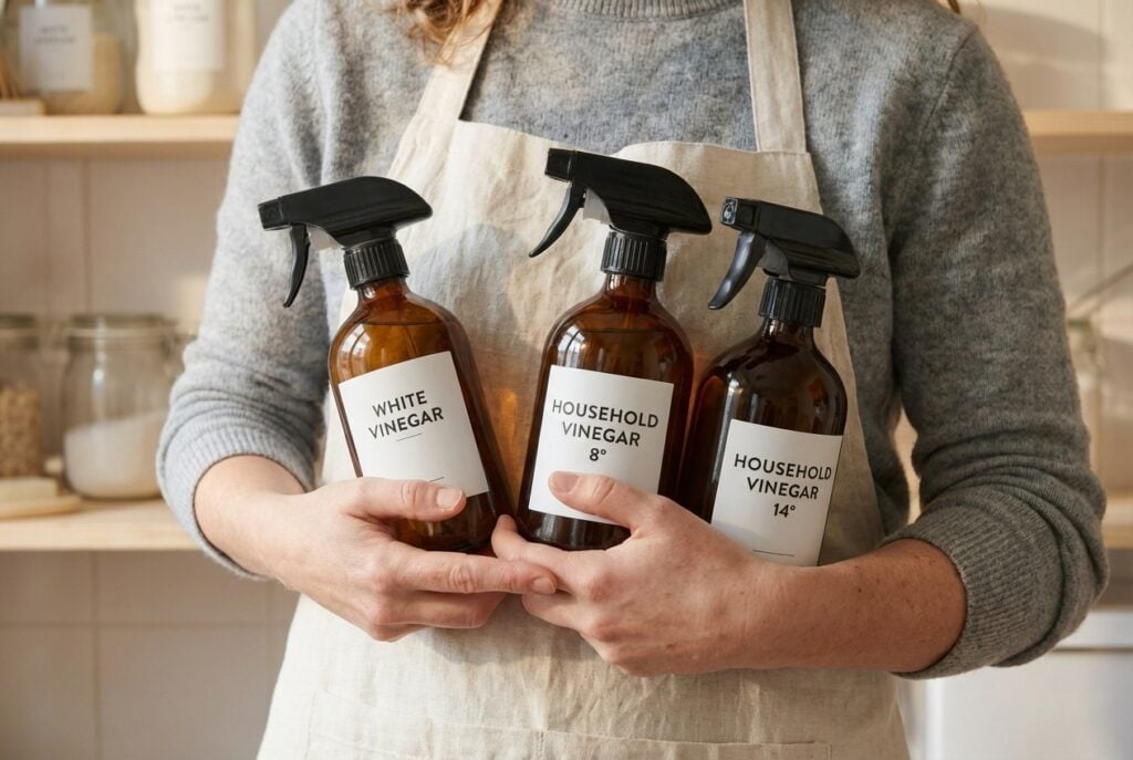 Rayon ménage, vous voilà face à une ribambelle de bouteilles : vinaigre blanc, vinaigre cristal, vinaigre ménager… Pas de panique, c’est souvent le même produit sous des noms différents. Tous sont composés d’eau et d’acide acétique, obtenu par fermentation de betterave ou de maïs. La vraie différence ? Le taux d’acidité, exprimé en degrés sur l’étiquette, qui détermine leur efficacité. Pour ne plus jamais vous tromper au rayon, tout est expliqué ici : vinaigre ménager ou vinaigre blanc, les différences concrètes.